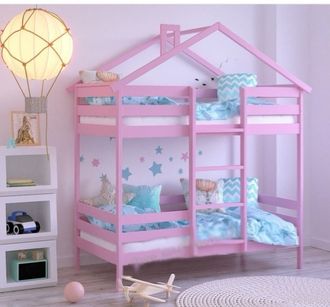 Кровать-домик 2х ярус с оригинальной крышей "Массив 008"